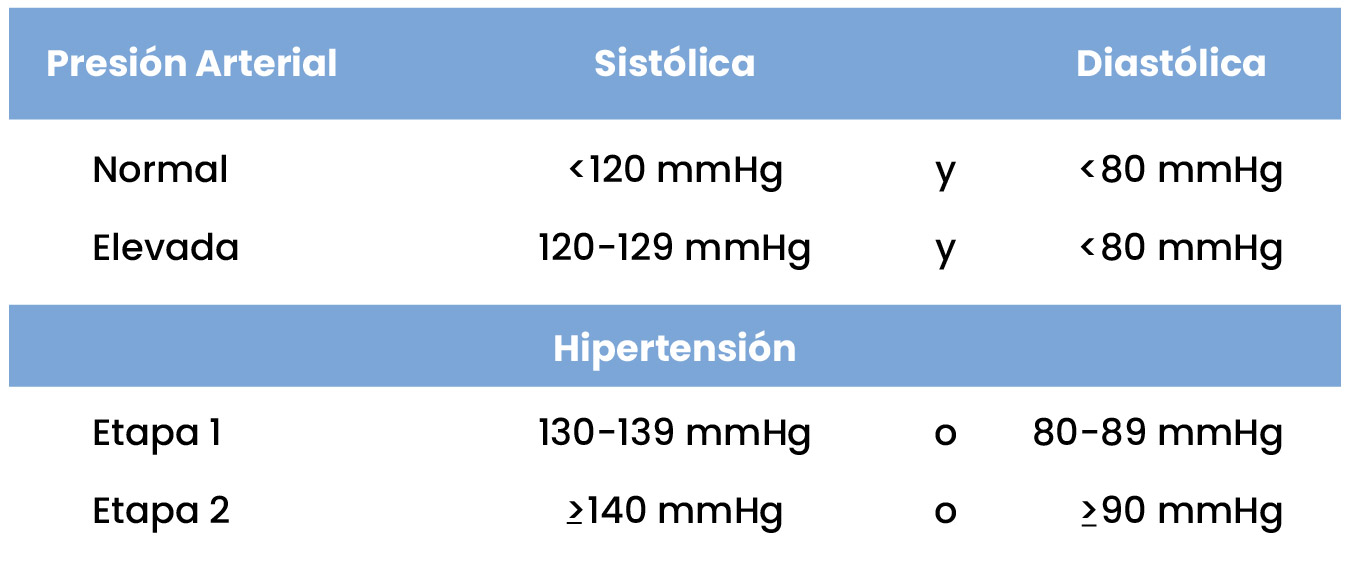 Una presión arterial normal es menor a 120/80 mmHg en adultos.